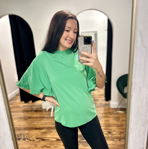Frilly round neck green blouse