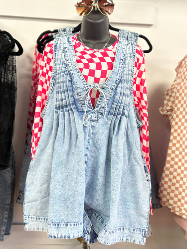 Front pleated denim romper