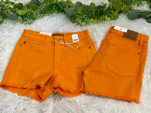 JB Orange raw hem mid rise shorts