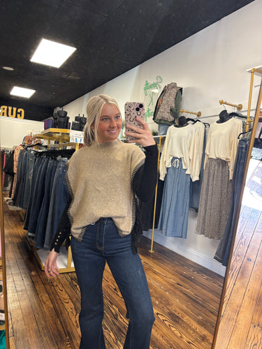 mocha sweater with line detail