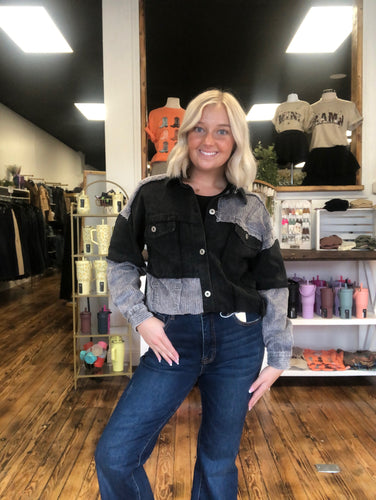Corduroy contrast color block shacket