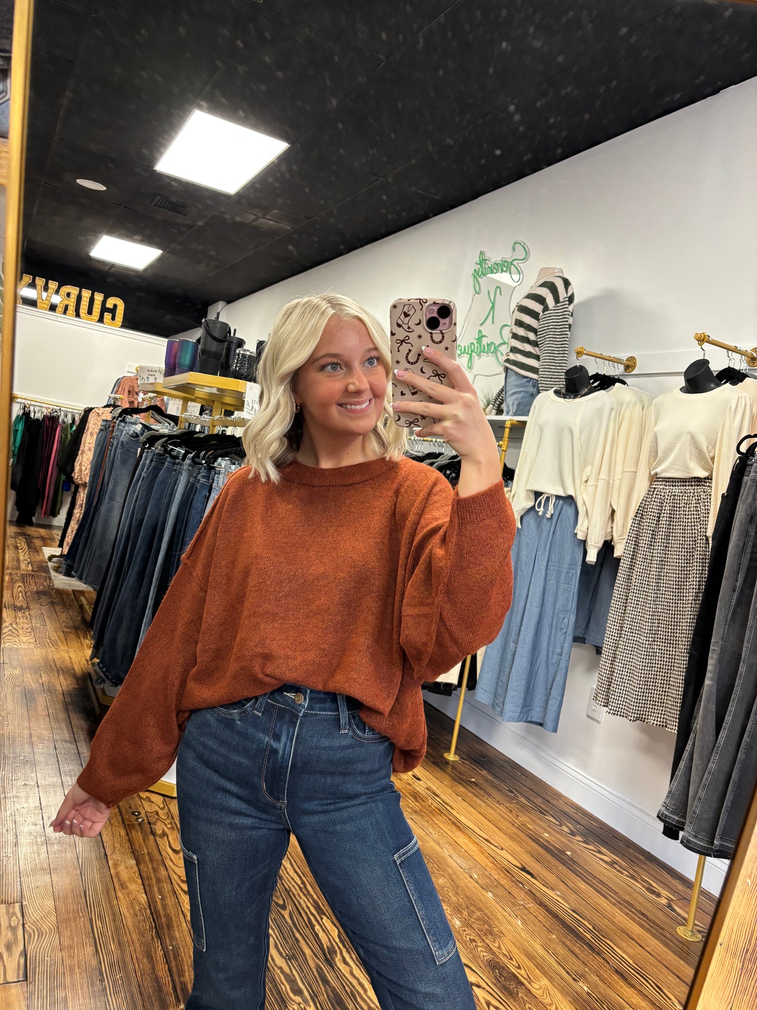 This soft oversized sweater pairs effortlessly with leggings, offering a comfortable yet stylish layering option. Its relaxed fit provides warmth without restricting movement, making it ideal for casual outings or cozy days at home. The versatile design complements the sleek silhouette of leggings, creating a balanced and chic look.